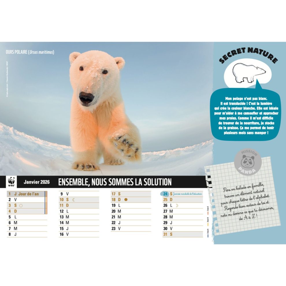 Offrir ce calendrier, c’est leur proposer un cadeau porteur de sens, à partager en famille, et affirmer votre engagement aux côtés du WWF pour faire grandir une génération de Gardiens de la Nature.