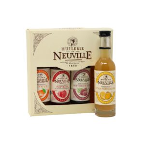 Invitez la créativité dans votre cuisine avec ce coffret de quatre vinaigres d’exception. Présentées dans de délicates mignonettes, ces recettes originales révèlent toute la richesse des fruits et légumes soigneusement sélectionnés. Chacun de ces vinaigres offre une explosion de saveurs, parfaite pour transformer une marinade, sublimer une salade ou réveiller un plat du quotidien.