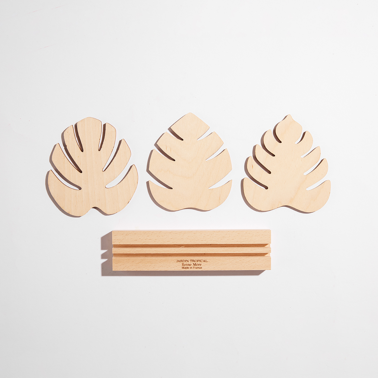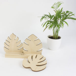Donnez une touche tropicale à vos apéritifs ! Ce lot de 3 dessous de verre avec sa base est fabriqué dans le Jura, à partir de bois de hêtre massif et feuille en contreplaqué bouleau issus de forêts gérées durablement.