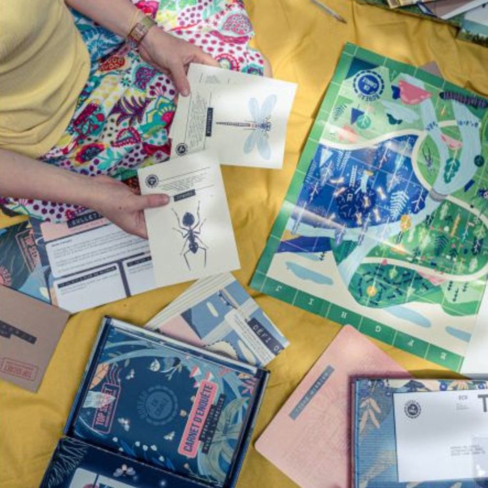 • Mêlant récit, énigmes, illustrations, matériel d’espionnage et défis créatifs, l’Enquête par Courrier est un format inédit super innovant, à mi-chemin entre l’escape game à la maison, le livre “dont tu es le héros” et l’abonnement littéraire jeunesse.