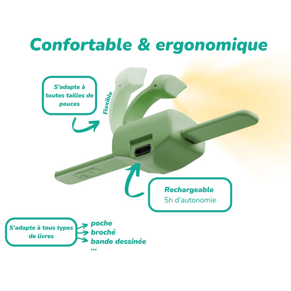 Redécouvrez le plaisir de lire avec Lizia, la lampe de lecture 3-en-1 médaillée au Concours Lépine. À la fois porte-page, marque-page et lampe LED, Lizia offre un confort de lecture incomparable. Ergonomique et légère, elle maintient vos pages ouvertes, éclaire votre livre en douceur sans gêner votre entourage et s’adapte à tous les formats du poche au grand roman. Rechargeable par USB, elle propose une longue autonomie et une intensité lumineuse réglée pour éviter la fatigue visuelle.