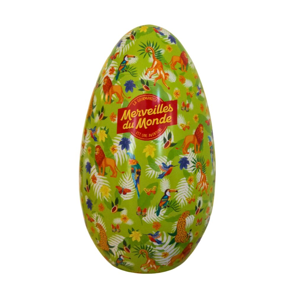 À l’intérieur, découvrez de savoureux mini-œufs en chocolat au lait, garnis d’un fourrage fondant chocolat-noisettes et agrémentés d’éclats croquants de noisettes et d’amandes caramélisées. Chaque mini-œuf est enveloppé dans un papier aluminium aux motifs colorés, évoquant l’univers fascinant de la faune sauvage. Une expérience gourmande et magique, parfaite pour émerveiller petits et grands explorateurs !