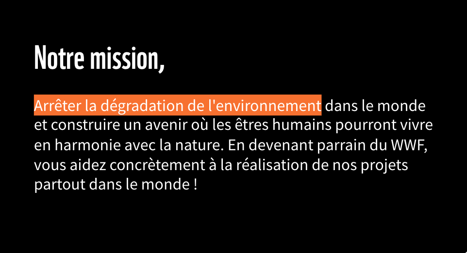 Avec un don mensuel de 15€, vous apportez un soutien durable aux actions du WWF en faveur de la protection des espèces et de la nature à travers le monde.
